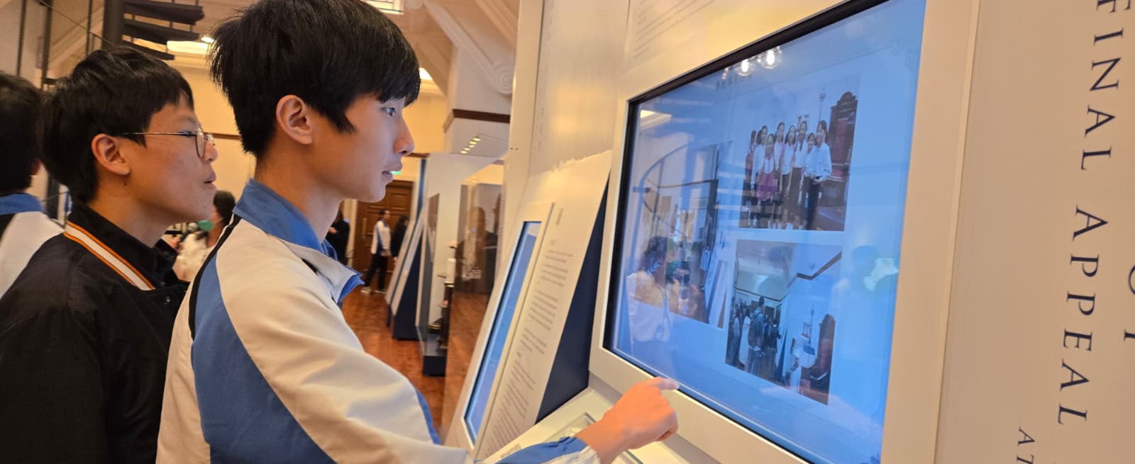 是次導賞團由蕭謙偉副校長和郭銳斌主任擔任領隊。同學們從燕京校園出發,抵埗後隨即獲導賞主任安排進入終審法院大樓。師生率先參觀了院內的建築歷史展覽廊及相關展品,如法院的立體橫切模型、法院大樓的三角楣飾和都鐸皇冠等,以了解最高級別法院的歷史。