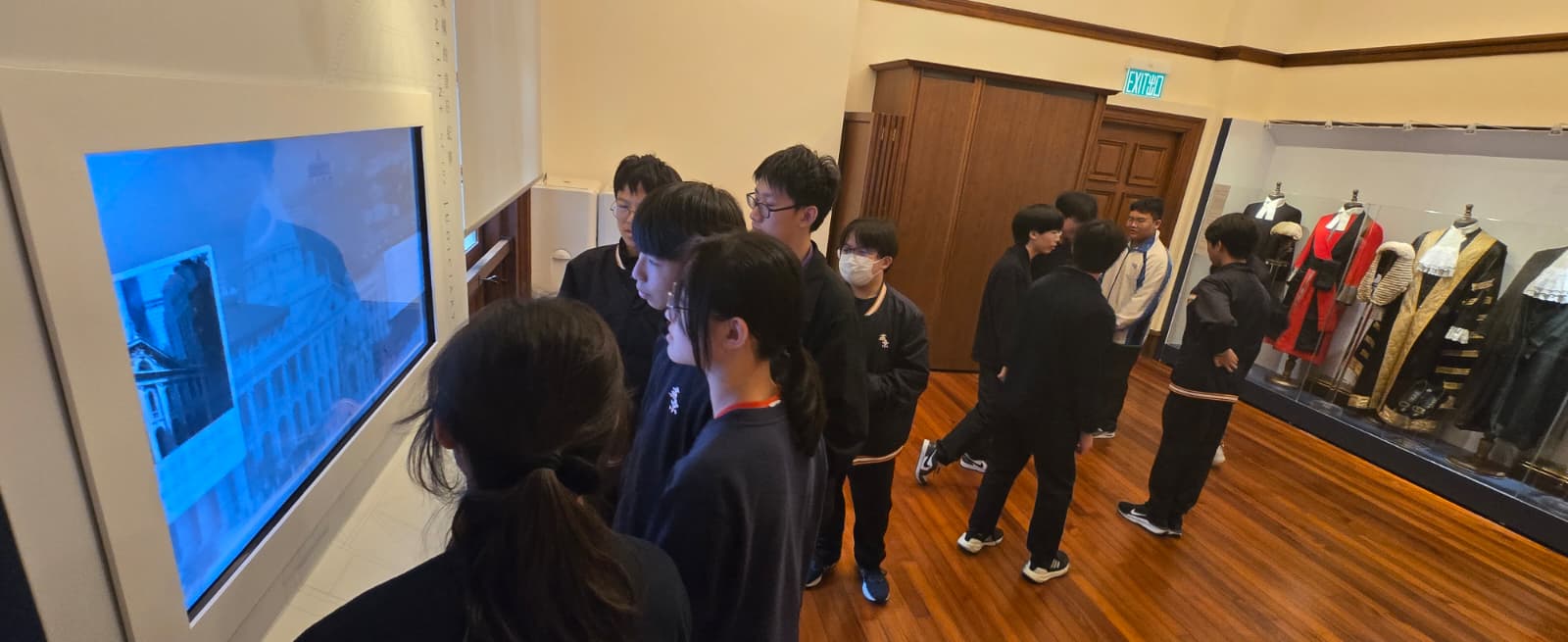 此外,同學們也把握這個難得的機會,瀏覽展覽廊內展示的錄像、照片及其他資料包括有關司法誓言、法律年度開啟典禮及司法人員服飾等。難得的是,一眾同學得以親身踏足終審法院圖書館、終審法庭和二號法庭,通過導賞主任的闡釋,加深了解法治的基本原則,真切感受到法庭的莊嚴,延展課堂所學。