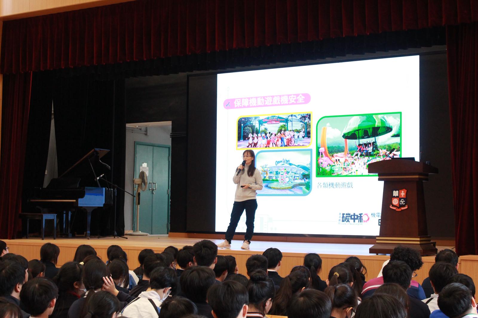 校園化身環保學堂!機電工程署彭姑娘到校與師生分享寶貴的能源知識,深入淺出,啟發大家對節能減碳的思考;同時一連三天的環保週展覽以互動形式進行,透過遊戲與體驗,成功吸引同學主動參與,邊玩邊學,樂在其中。
